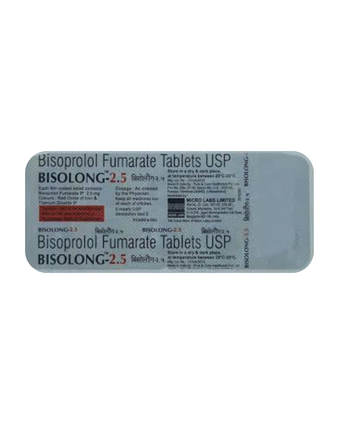 Bisolong 2.5 mg Tablet contains Bisoprolol Fumarate, a selective β₁-blocker. It is primarily used to manage hypertension (high blood pressure), angina (chest pain), heart failure, and arrhythmias (irregular heart rhythms). By slowing the heart rate and reducing the heart’s workload, it helps in improving heart function and reducing the risk of future cardiac events.