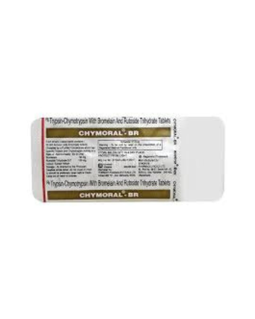 Chymoral-BR Tablet is a combination medication manufactured by Torrent Pharmaceuticals. It contains Bromelain (90 mg), Rutoside (100 mg), and Trypsin-Chymotrypsin (50,000 AU). This formulation is designed to provide effective relief from pain, inflammation, and swelling associated with various conditions such as arthritis, fever, toothache, menstrual cramps, and headaches.
